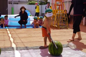 毎年恒例の子供たちも先生たちも盛り上がるスイカ割り🍉