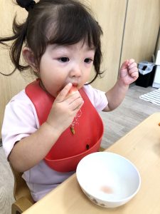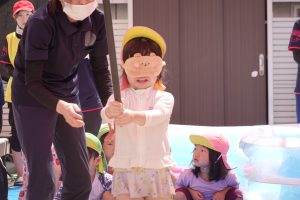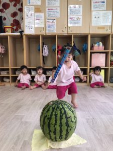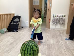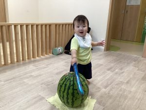 お部屋で先生と一緒にスイカ割りを楽しみました✨