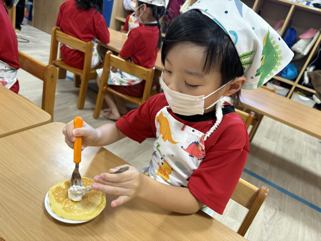 生クリームやいちごジャムなどを自分の好きなようにトッピングしていきます🥰